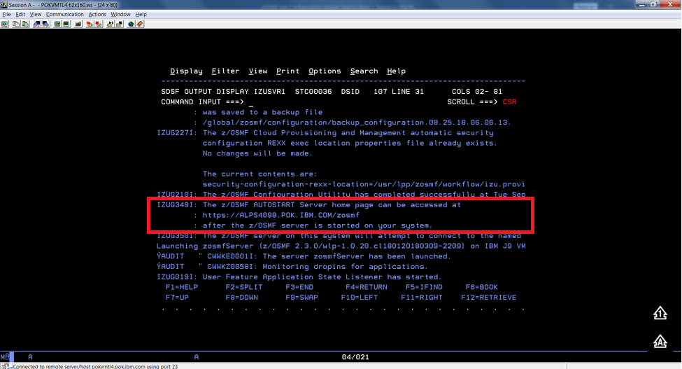 to determine if the port is being used.The system host name is unique and maps to the system on which z/OSMF Lite is being installed. To retrieve this value, enter either "hostname" z/OS UNIX command or TSO command "HOMETEST". If your system uses another method of assigning the system name, such as a multi-home stack, dynamic VIPA, or System Director, see z/OSMF Configuration Guide.