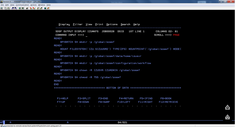 ResultsThe z/OSMF file system is allocated, formatted, and mounted, and the necessary directories are created.