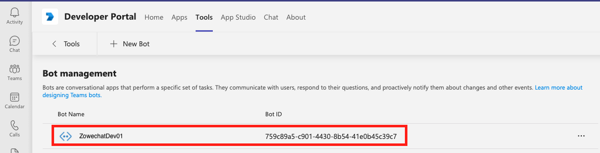 and select Tools.Click the Bot management. Choose the bot that you created and start editing your bot app.